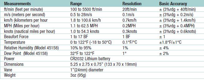 EXTECH 45158葉輪風速氣象儀的技術參數