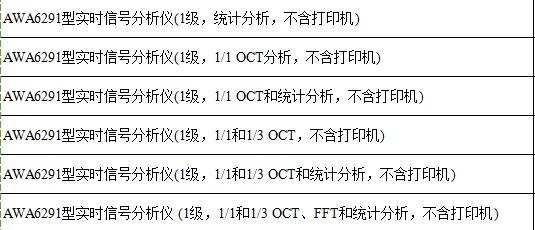 AWA6291實時信號分析儀主要技術性能: 1、信號輸入:插座:X9-6z,可選LEMO插座;輸入阻抗:150kΩ//100pF;最大輸入電壓:10V(有效值)。 2、頻率范圍:10Hz~20kHz(±0.2dB),1Hz~23kHz(±1.0dB)。 3、量程增益:-10dB、0dB、10dB、20dB、30dB、40dB。 4、自生噪聲電壓:小于4μV(1Hz~23kHz)。 5、電壓測量范圍: 15μV~10V (有效值)。 6、信號輸出:插座:Φ3.5立體聲耳機插座;輸出阻抗:1kΩ;最大輸出信號電壓:3.2V 7、級線性范圍:大于90dB。 8、A/D位數:24位。 9、采樣頻率:48kHz。 10、顯示器:240×160點陣LCD,有EL背光。 11、輸出接口:RS232接口,可接微型打印機打印測量結果,也可接PC機送出測量結果和實時分析結果。USB接口,mini B型,符合USB1.1,兼容USB2.0,可連至PC機。 12、數據存貯:測量結果保存在48Mbit的FLASH中,也可將數據轉存到U盤中。 13、內部日歷時鐘:誤差小于1分鐘/月。 14、儀器內部自帶符合GB 2312標準的漢字庫,可在儀器上輸入中英文測點名。 15、用戶可設定開機時間及關機時間。開機穩定時間:小于30秒。 16、工作電源:6節LR6堿性電池或可充電電池,也可使用8V外部電源。 17、外形尺寸:210×90×38(mm)。 18、質量:0.5kg。 19、電磁兼容性:滿足IEC 61672.1:2002標準中對X類聲級計的要求。 20、工作環境: 工作溫度:-10℃~+50℃;相對濕度:25%~90%; 大氣壓力:65kPa~108kPa。