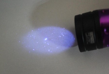 大多數的體液在高強度的紫外線作用下可以看到,是因為體液有自然熒光反射的特點。在復雜的刑偵現場,可以利用高強度的紫外線燈簡單及不復雜的使用方式尋找到有價值的痕跡。在高強度紫外線能量的激發下,這些體液的熒光反射是人的肉眼可以直接看到的。雖然,這種方式不能直接確認所找到的體液是哪一種,但是,通過使用高強度紫外線燈遠距離大面積的搜尋,可以直接幫助你確定在哪里有提取價值的痕跡物證,然后可以對 這些地方進行編號標出,從而為下一步的分析提供有價值的物證。